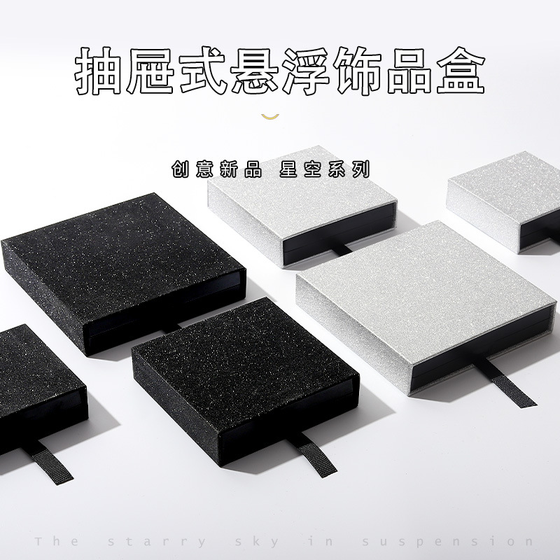 PE薄膜悬浮盒首饰收纳盒手串手镯抽拉盒透明展示盒项链戒指礼品盒