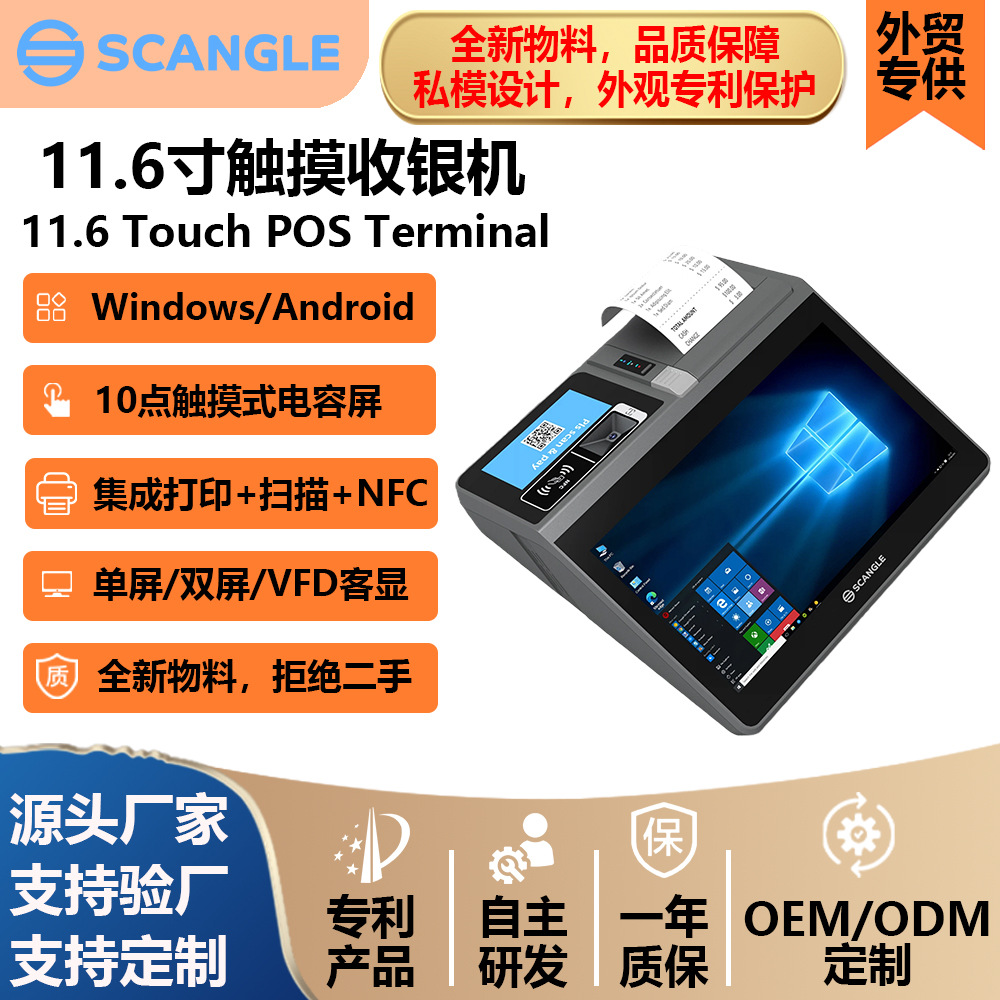 源头工厂直销 11.6寸触摸POS终端点餐收银一体机