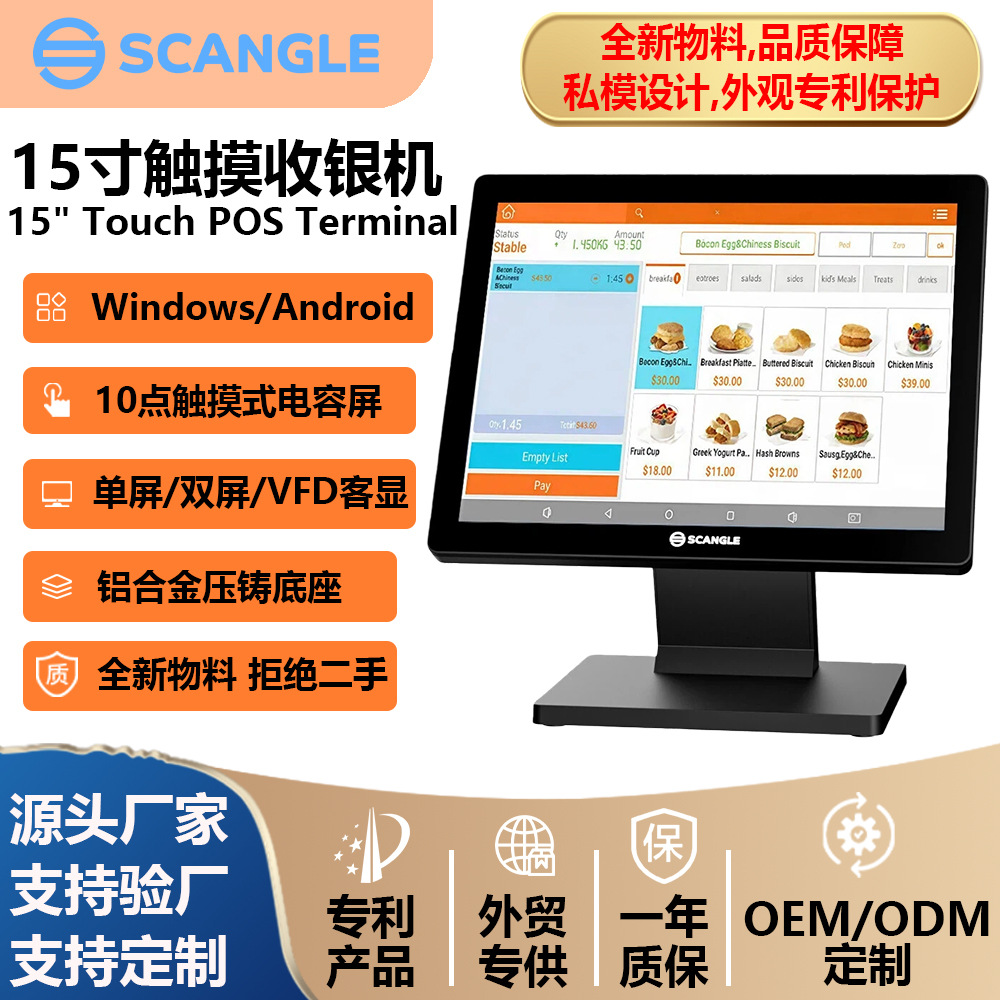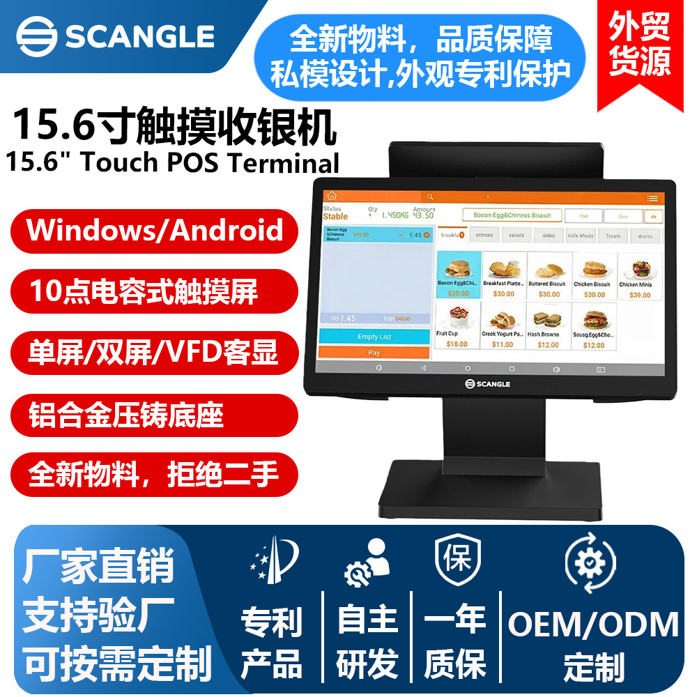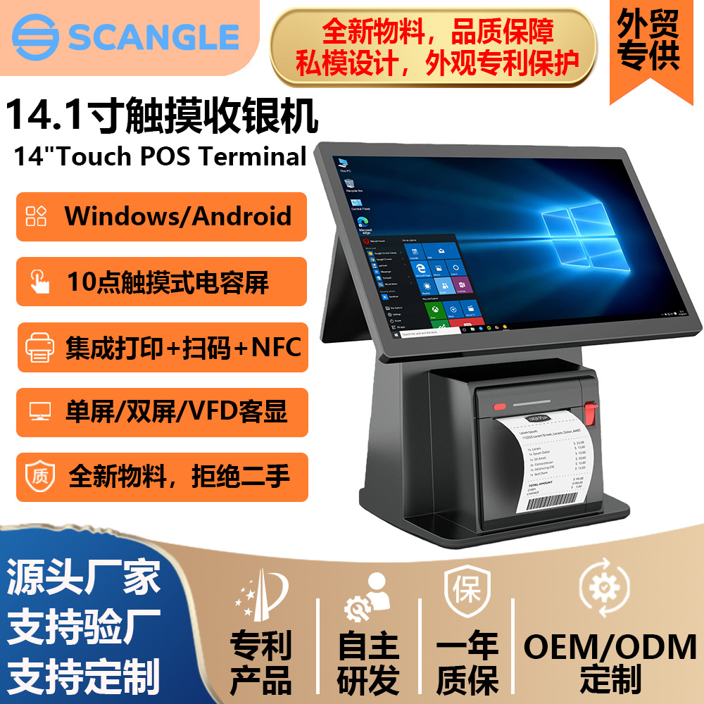 选配功能:喇叭 / WiFi / VFD客显/4.3寸副屏(不带触摸 )/ 内置二维扫描