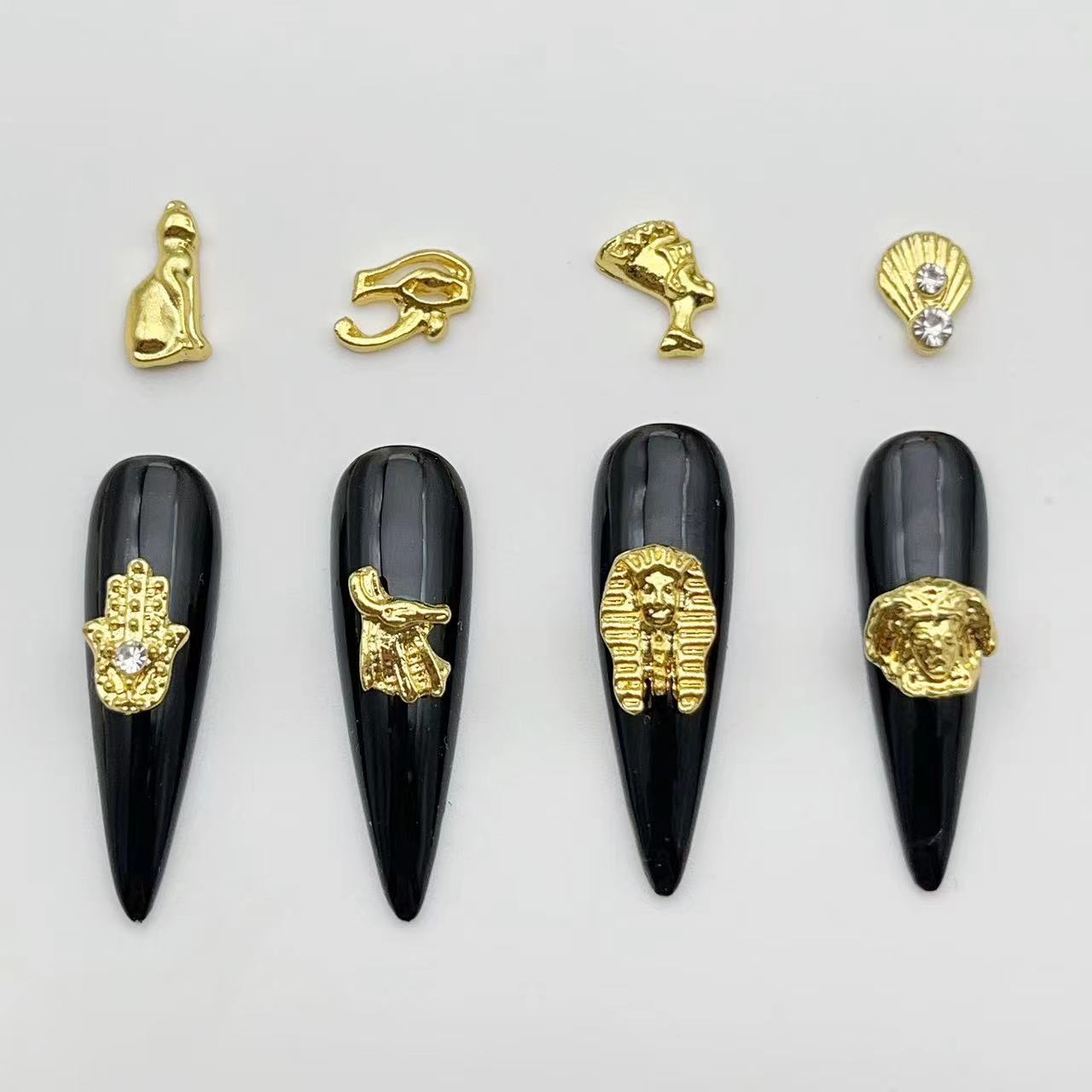 国境を越えたソース合金ファラオエジプトの8種類の個性的なデザイン艶後マニキュア金属爪ドリルアクセサリー部品
