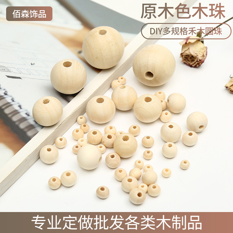 新型原木色イネ科木珠多規格車木丸珠diy自動車クッションアクセサリー