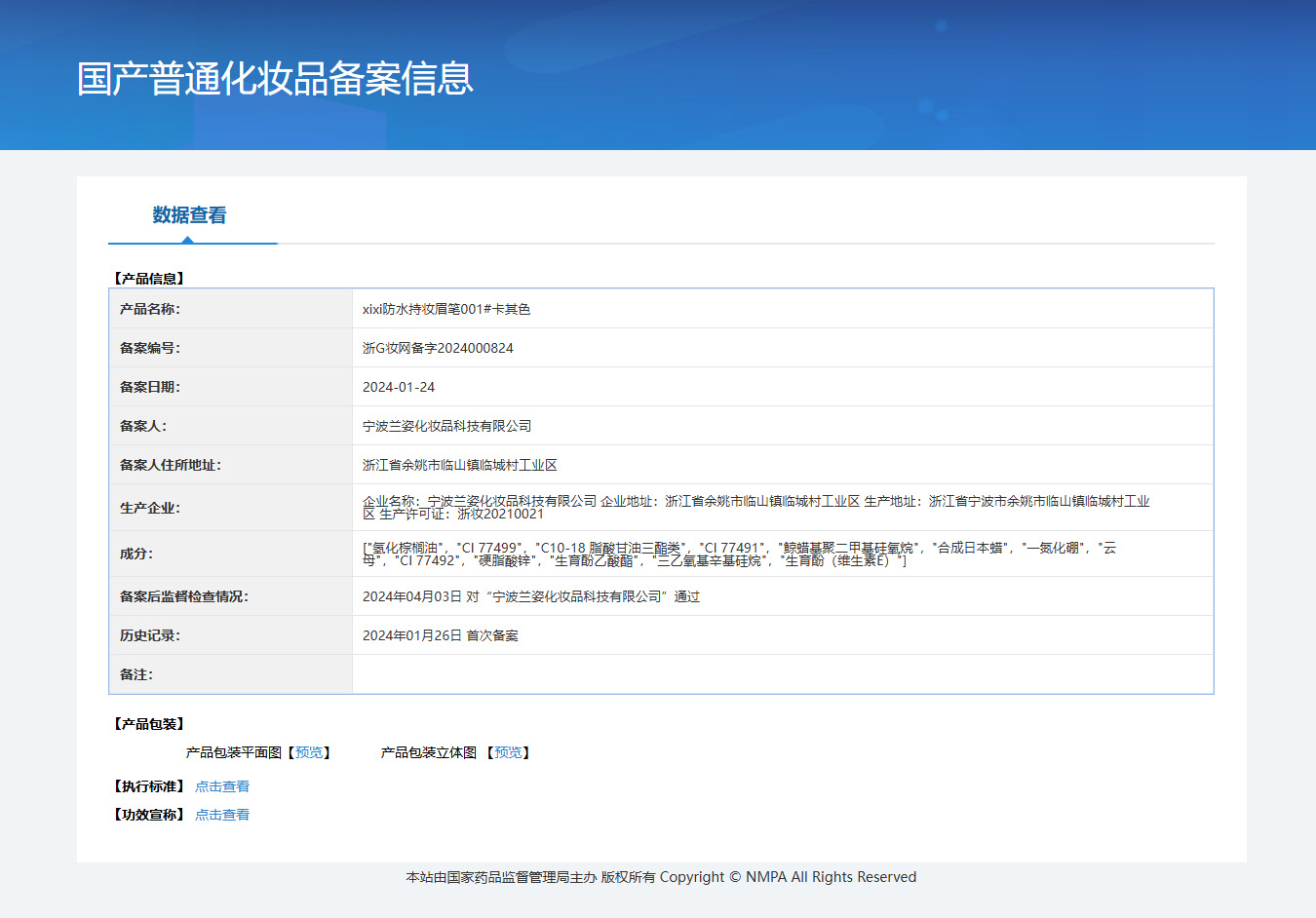 非特定化粧品届出証番号 浙江Gメイクアップネットワーク準備番号 2024000824