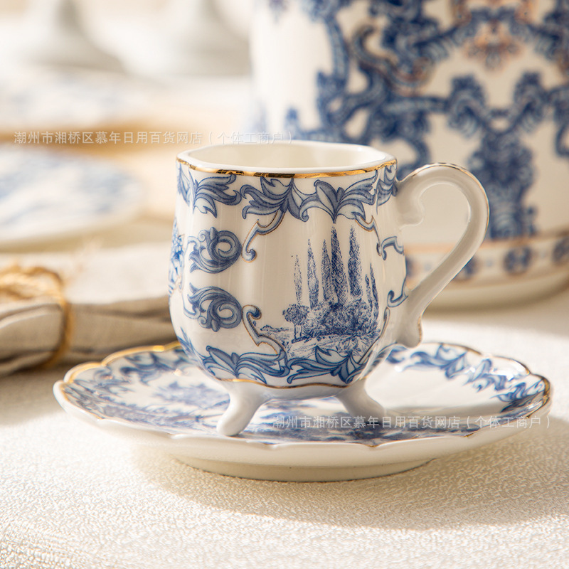 トルコ風青花エスプレッソカップ&ソーサー、ギフト用金縁コーヒーカップ、ホテル・レストラン向けセラミックギフトボックス