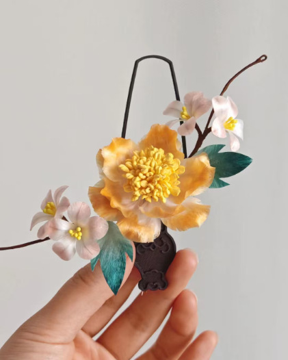 琉璃製の貝殻風立体花、古風アクセサリー、DIY製作、ヘアピン、ヘア冠、イヤリングアクセサリー、琉璃製の小桜