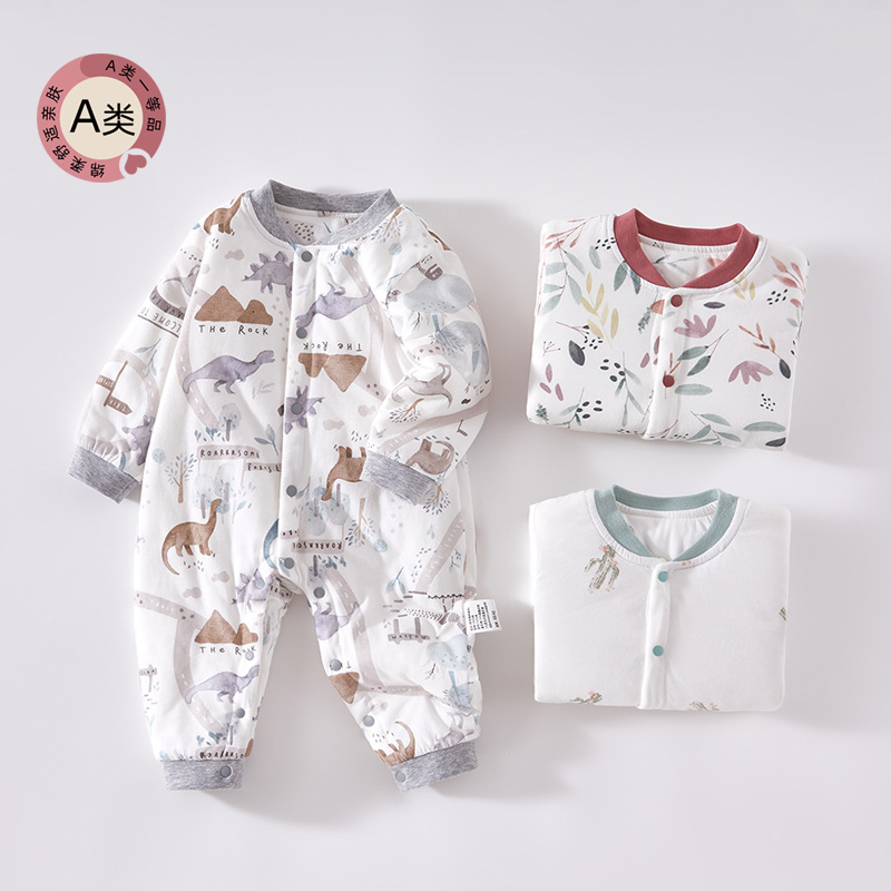 乳幼児連体服春秋冬服保温冬綿秋新生児服薄綿女子赤ちゃんが厚くなる