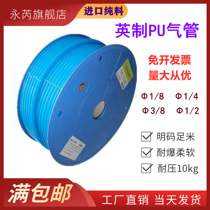 ヨングイ永瑞純材料英製pu気管1/8 1/4 3/8 1/2高圧エアコンプレッサ気管ホース