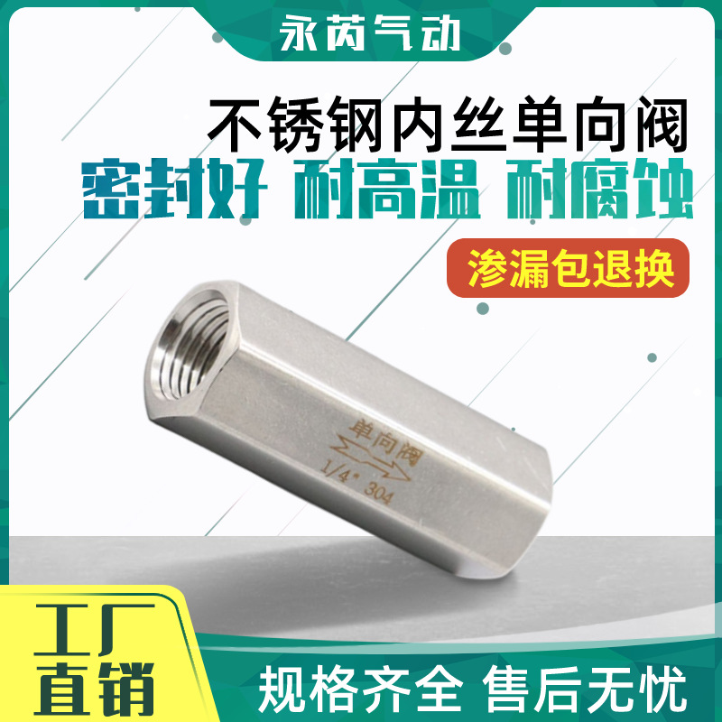 304ステンレス単方向弁二重内糸六角逆止弁直通糸バックルガス液体水管気管弁