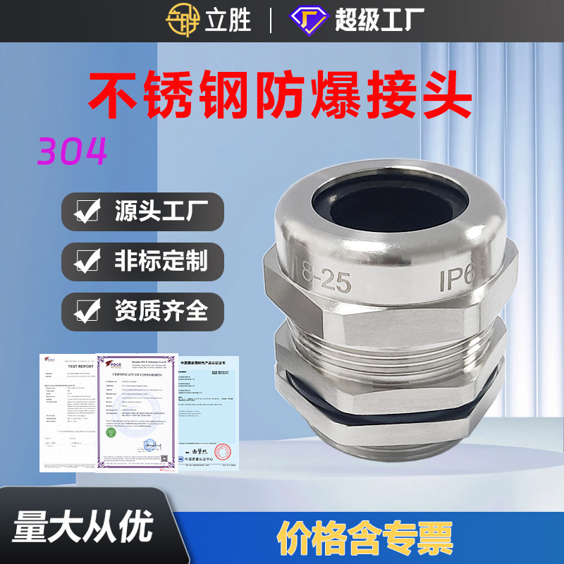 Lisheng 304 ステンレス鋼防水ケーブルジョイント防爆シール固定ジョイントロック金属グランド