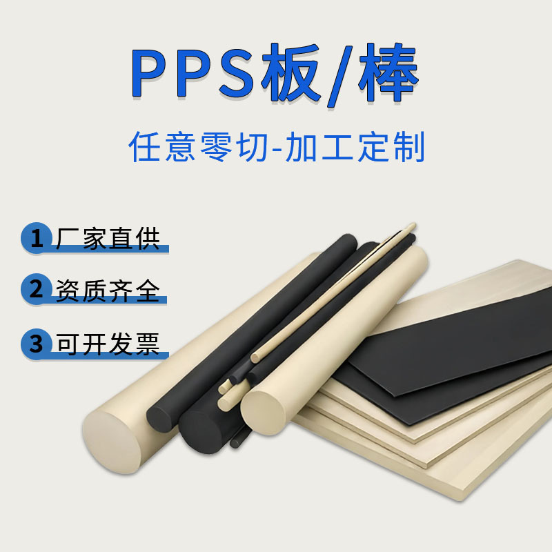地色PPS板耐高温ポリフェニレンスルフィド加繊維PPS棒難燃黒色GF40PPS板棒加工カスタム