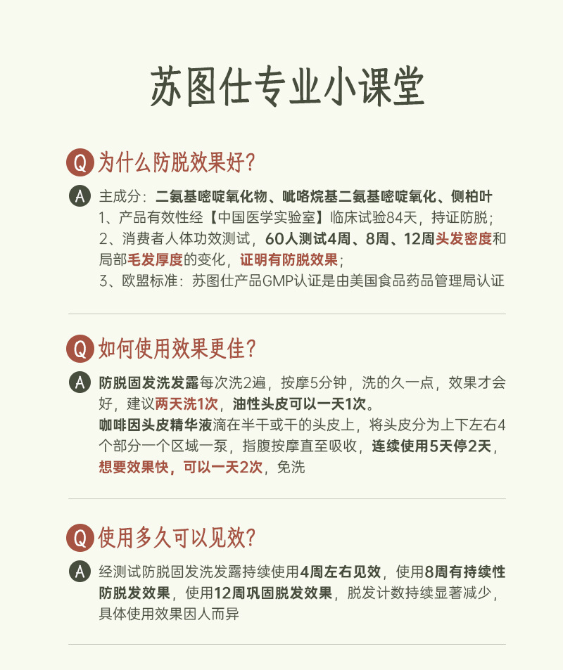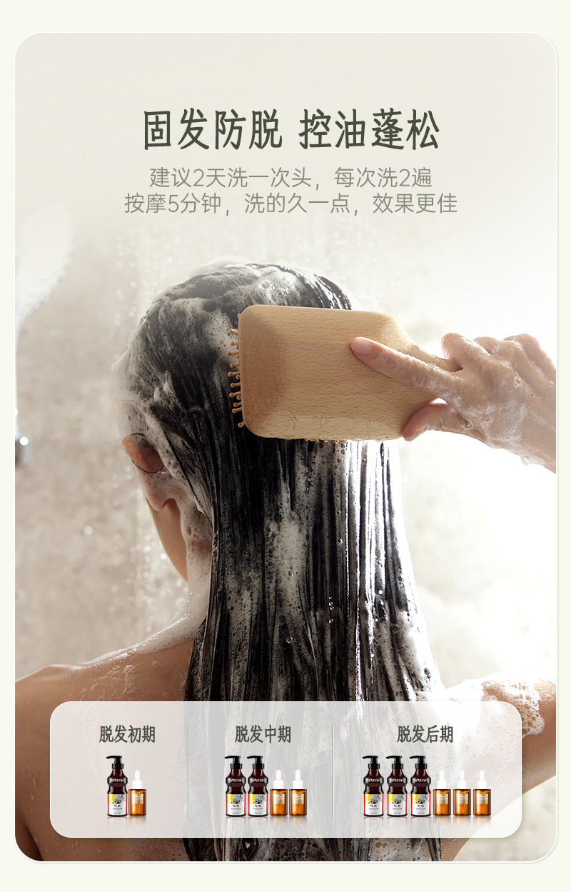 如何使用效果更佳:防脱洗发水每次洗2遍,用指腹按摩整个头皮