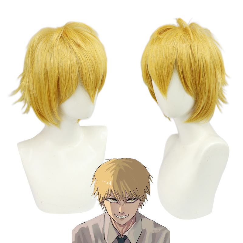 漂芸チェーンソー人チェーンソー男主人公電次cosかつら打毛工芸コスプレ金色高温糸