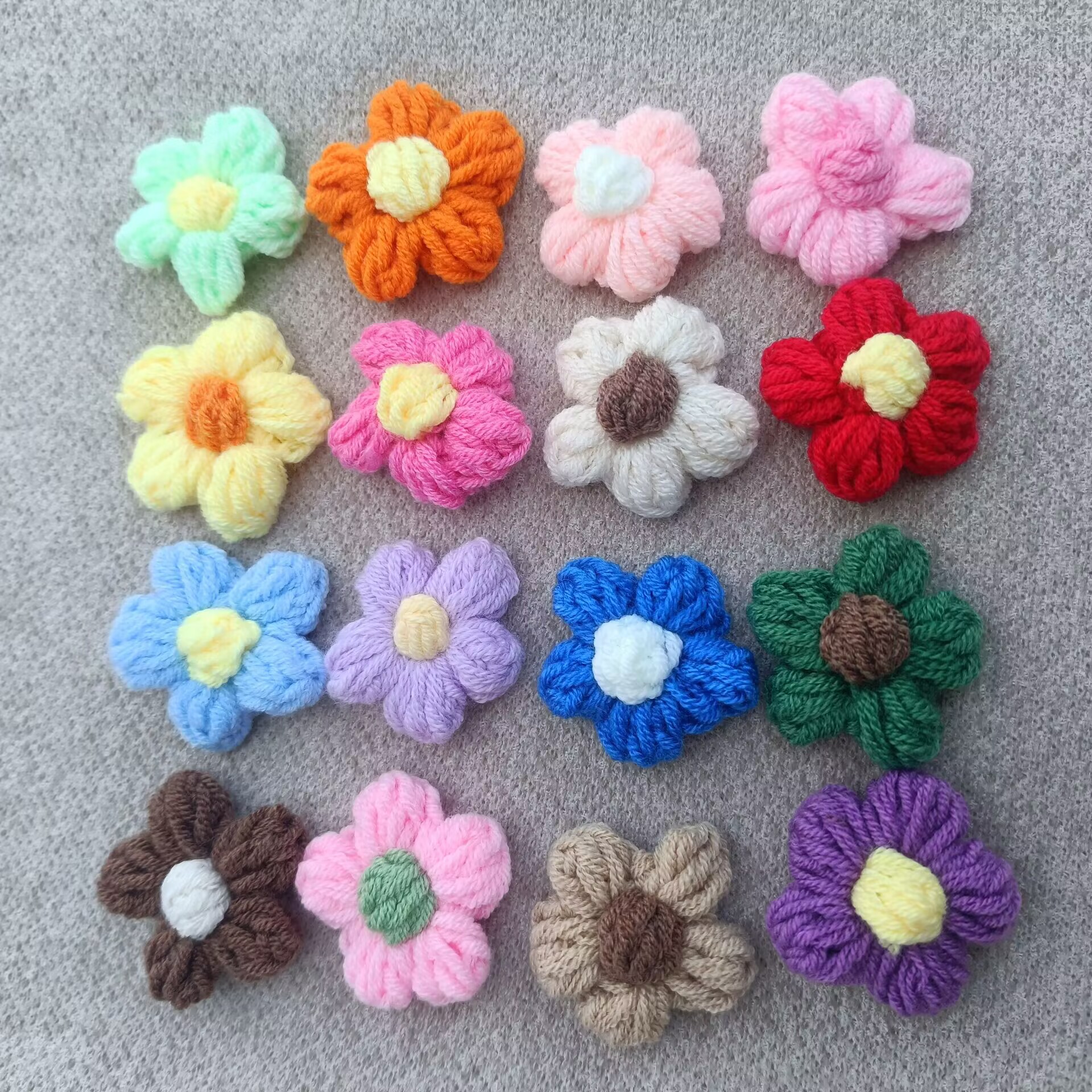 用途:手工毛线钩成的花片,可以装饰在衣服,帽子、围巾、袜子、鞋子、包包的DIY点缀,还可以做头花、发夹、胸花等等。也可用于杯垫、碗垫......等高品味装饰