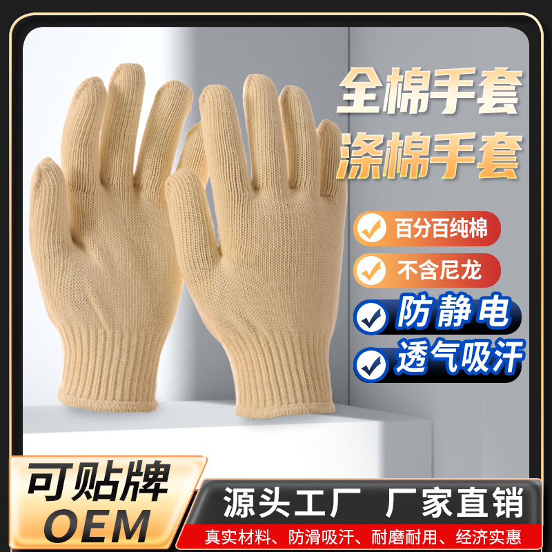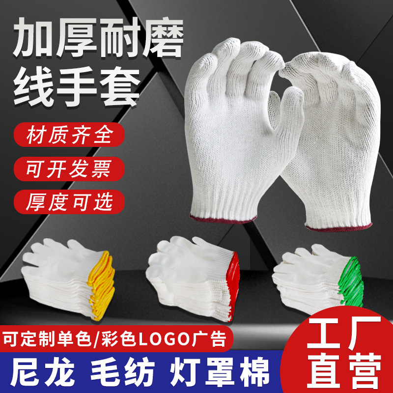 綿ガーゼ手袋、労働保護、耐摩耗性糸手袋、厚みのある滑り止め、薄いナイロン建設現場卸売作業耐摩耗性