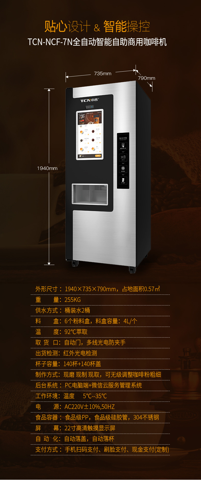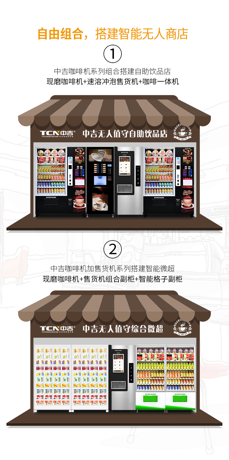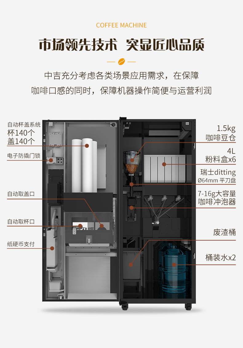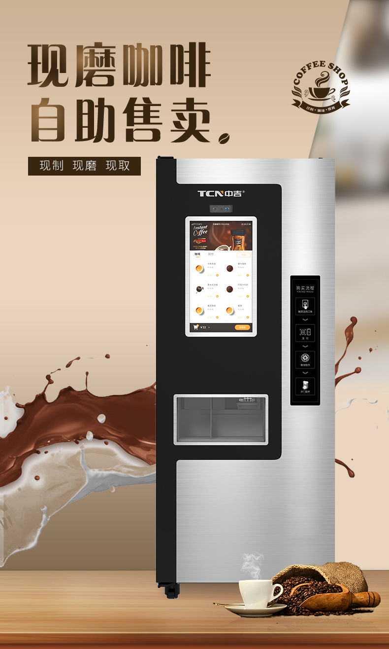 中吉挽きたてコーヒー自動販売機、スマート無人コーヒー機、QRコード対応全自動販売機メーカー