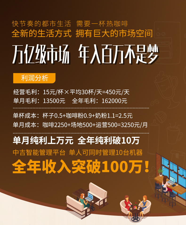 中吉冷热咖啡奶茶果汁自动咖啡机速溶咖啡机商用饮料咖啡售货机