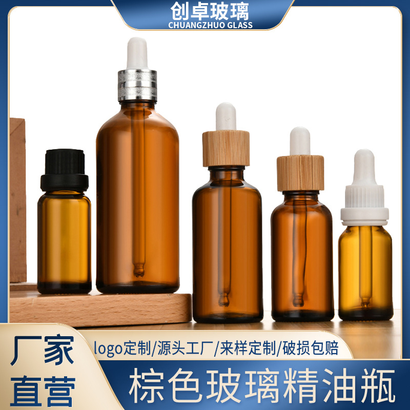 茶色の光を避ける精油瓶ガラス茶色の原液瓶多規格精華瓶化粧品サンプル瓶スポイト瓶