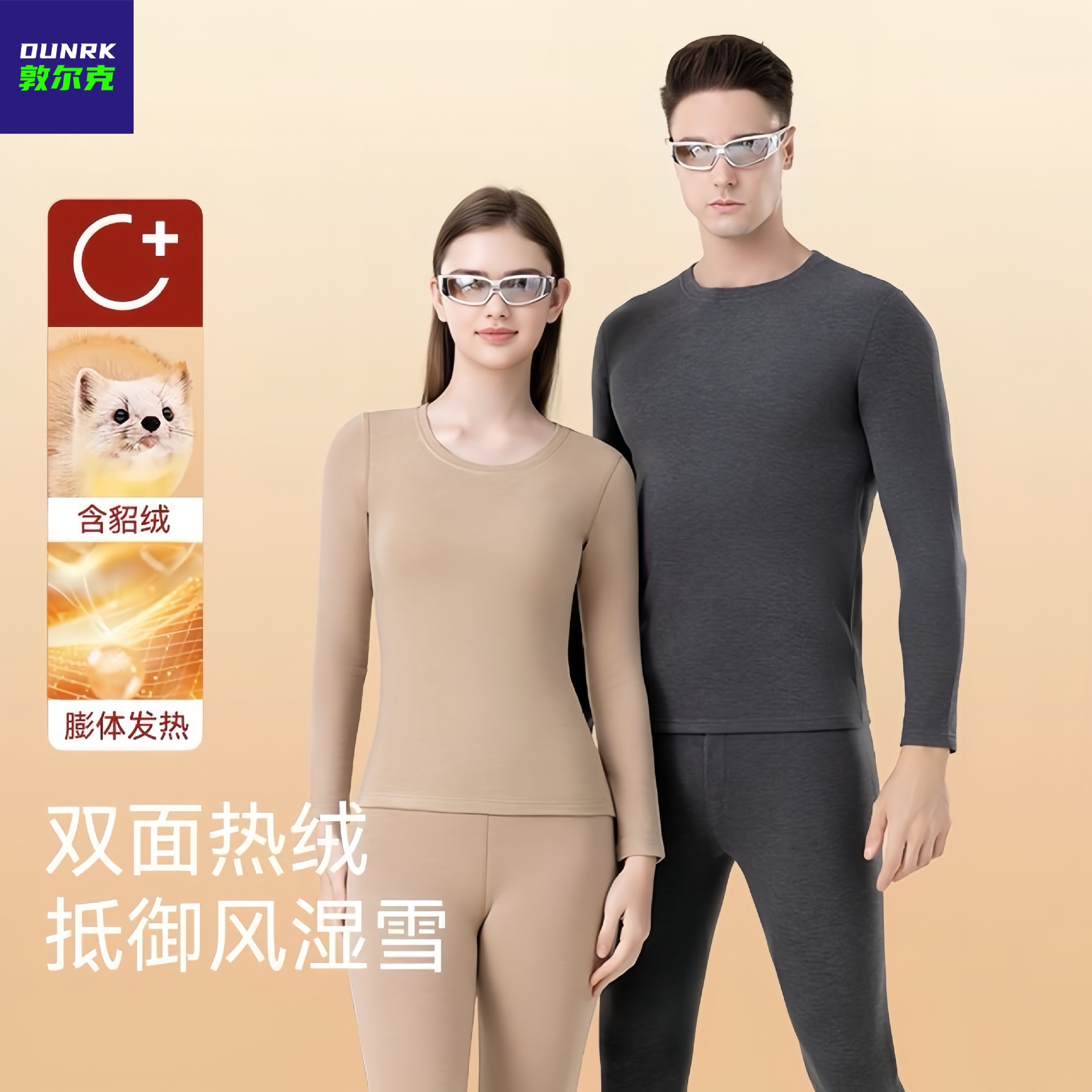 カシミヤシルク半高襟保温下着徳絨毛発熱中襟秋衣秋ズボン加毛厚手カップルスーツ