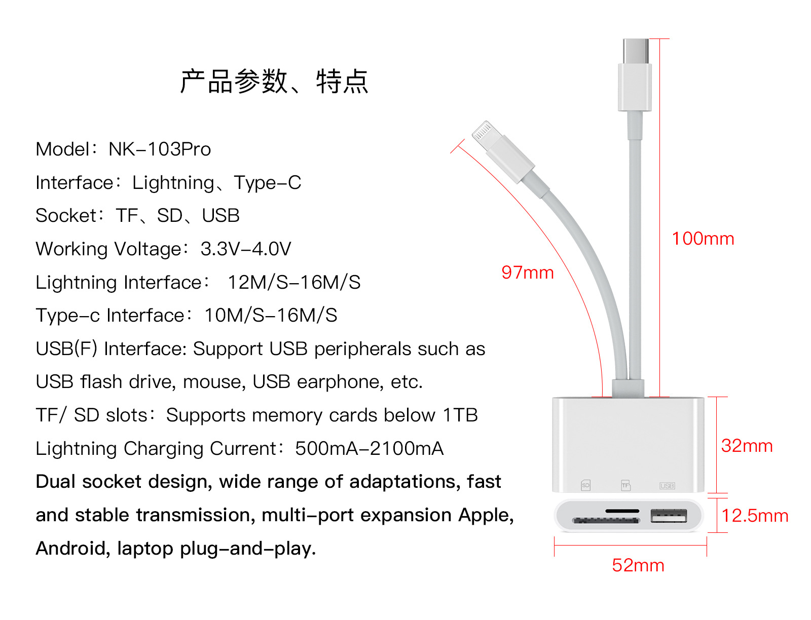 NK-908C HD Apple Android USB3.0 多機能携帯電話カードリーダー SD カードコンバータ充電付き