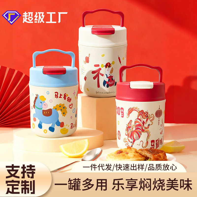焖烧杯马年新款国潮便携保温杯316不锈钢内胆简约手提保温焖烧杯