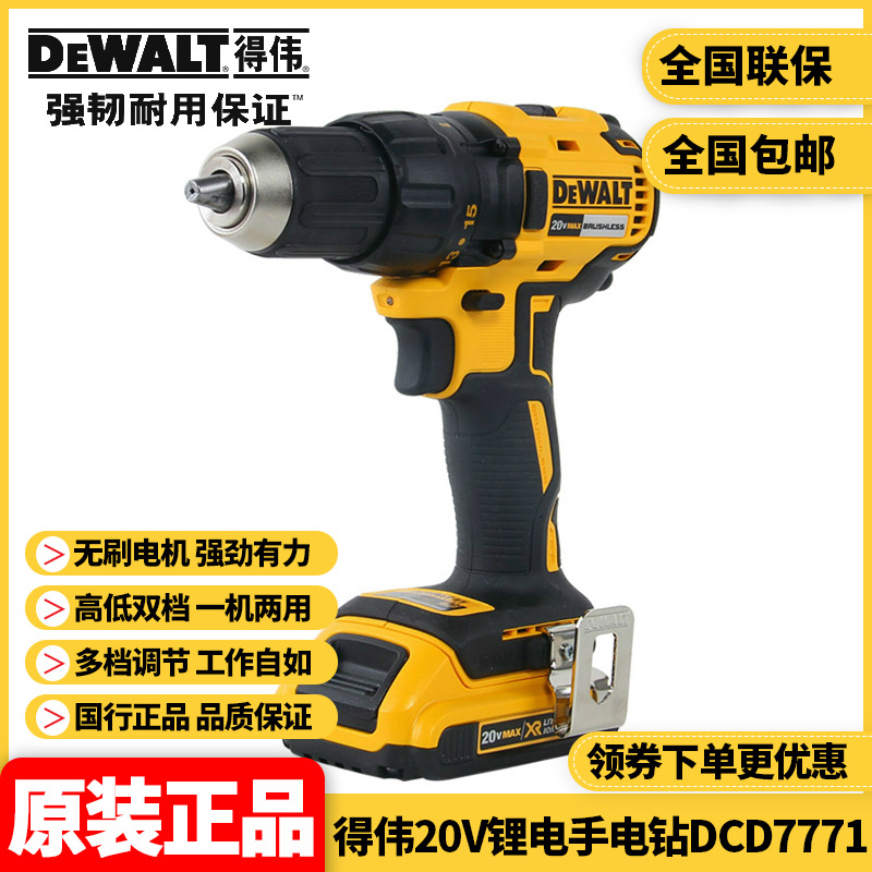 元のDEWALTは偉大なブラシレスドリル20v充電ドリルリチウム手動ドリル無線手動ドリルDCD7771を得た