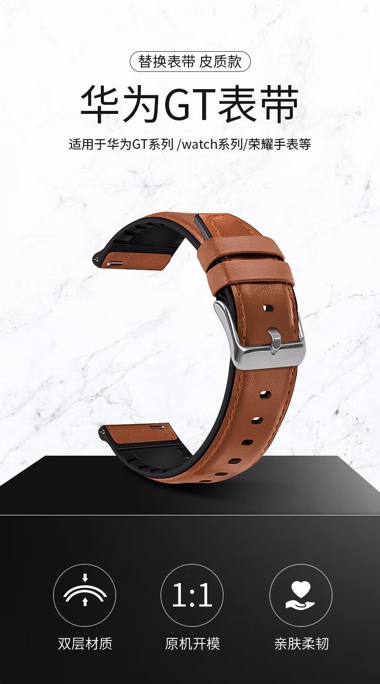 適用華為gt3/gt4Pro革バンドwatch 4快適スマート腕時計22mm汎用本革バンド
