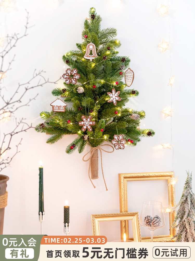 意菲ins小型壁面クリスマスツリードアペンダント壁立体配置ネット赤ミニ壁にランプ装飾がついている