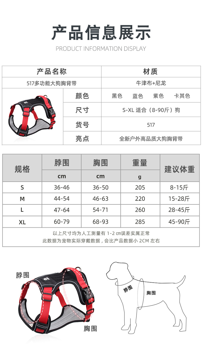 S (推奨 4-7.5kg),M (推奨 7.5-14kg),L (推奨 14-22.5kg),XL (推奨 22.5-45kg)