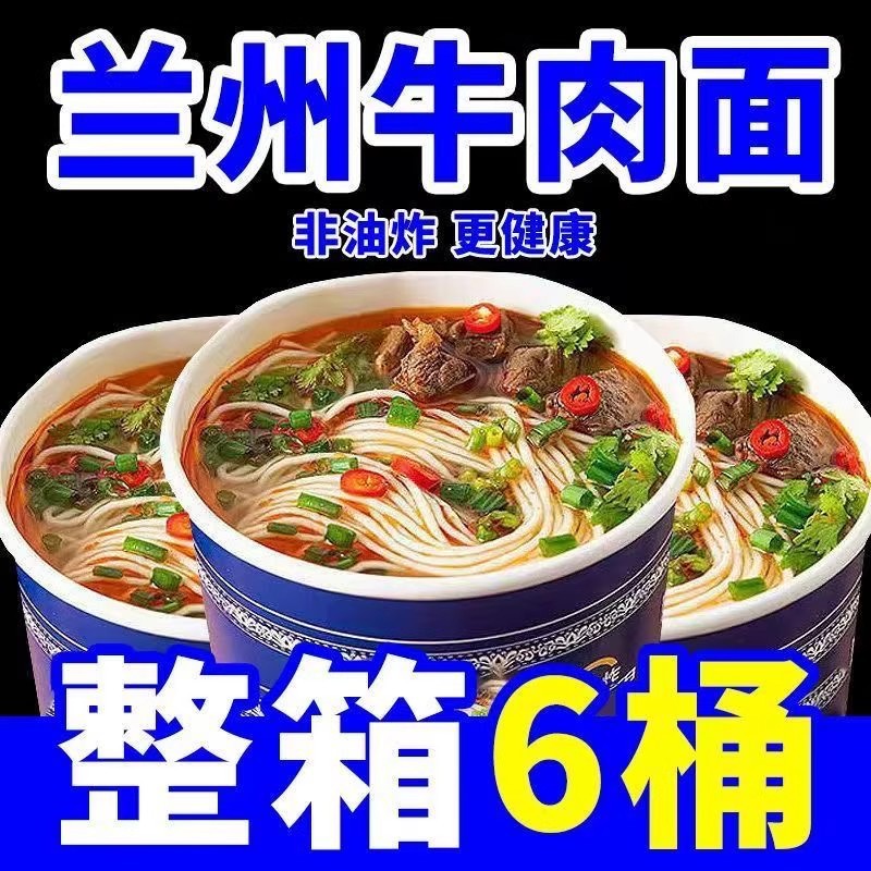 牛肉麺蘭州ラーメン重慶小面6桶入り非揚げ物無煮インスタントラーメンインスタントラーメン箱卸売り