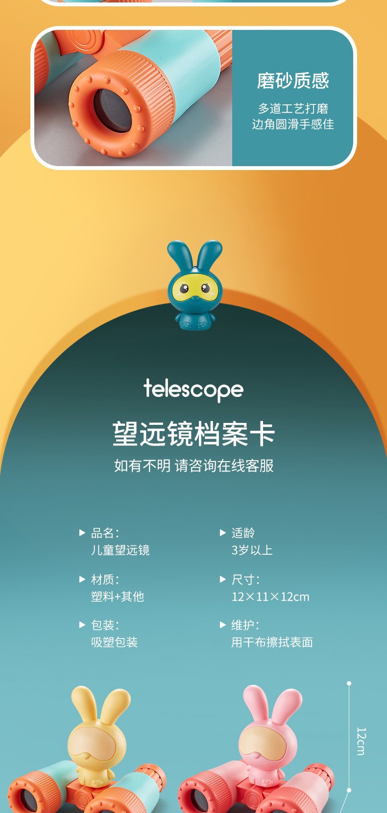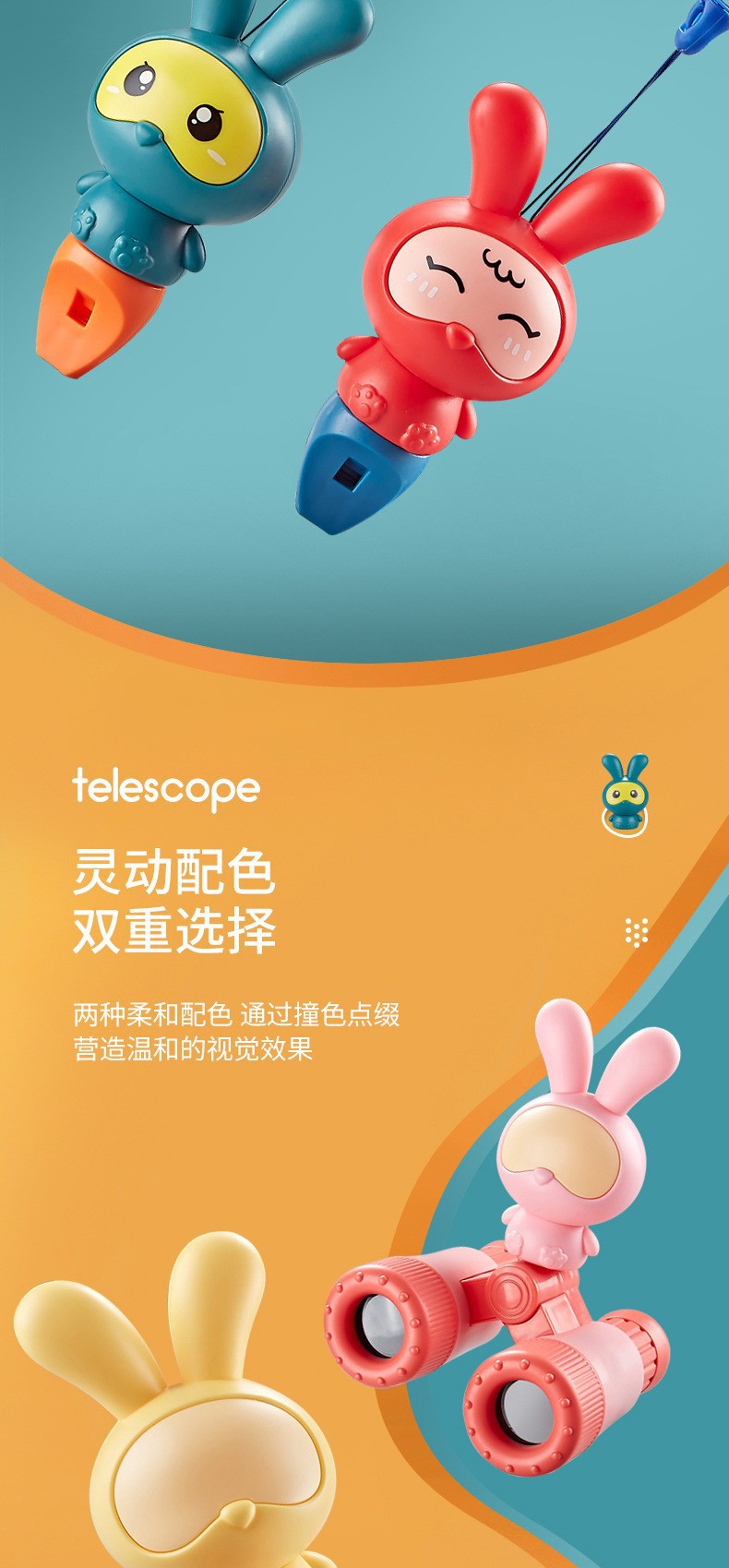 赤ちゃんの漫画の子供のおもちゃの萌えウサギの望遠鏡は取り外し可能です。
