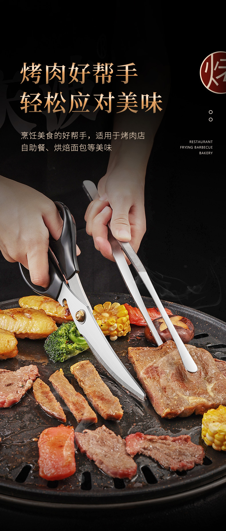 韓国式ステンレス鋼バーベキューはさみ レストランキッチン用 鶏肉、フライドチキン、バーベキュー用大型はさみ ステーキ、チキンステーキ用はさみ
