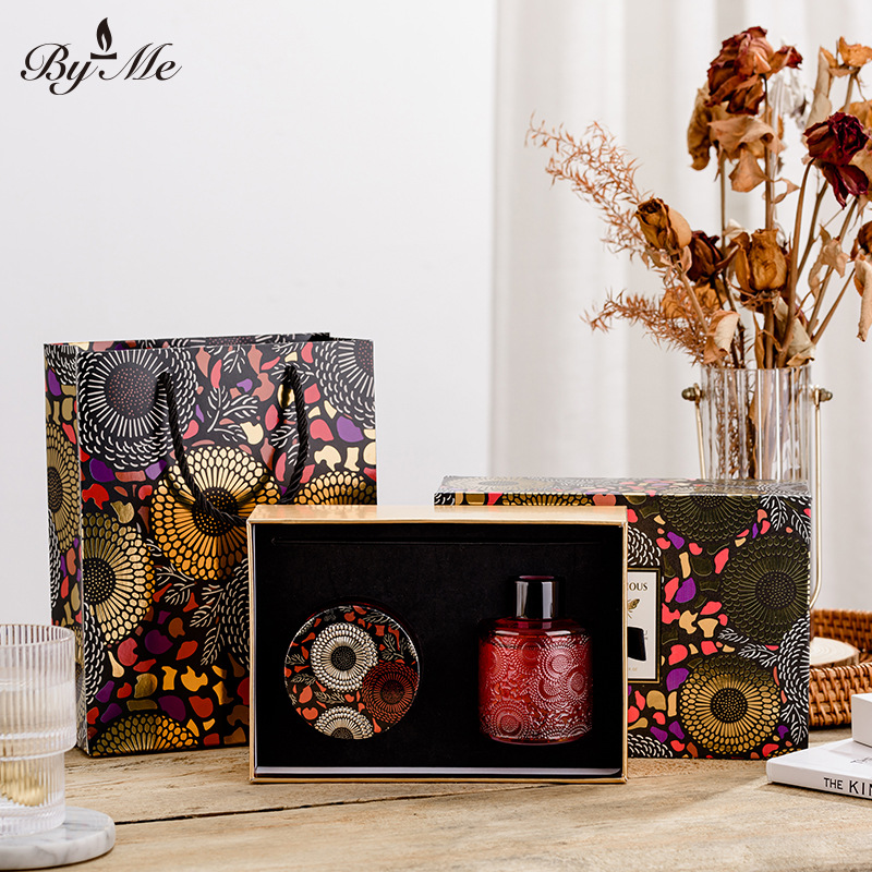 BYME エンボスキャンドルカップキャンドルアロマギフト高級感エッセンシャルオイルギフトボックスアロマキャンドルお土産