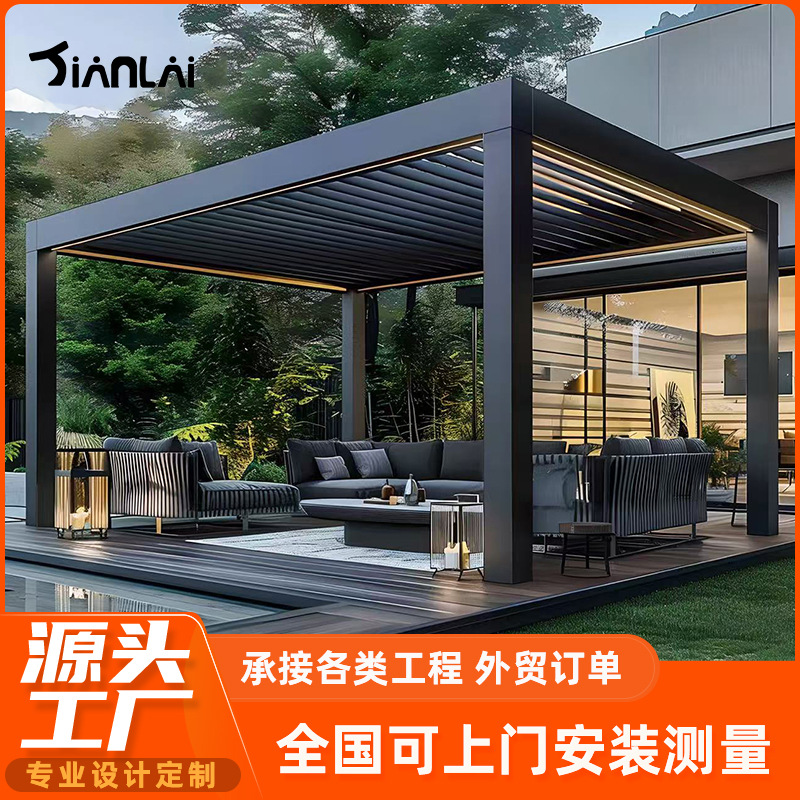 メーカー直接供給中庭アルミ合金パビリオン屋外サンルーム電気インテリジェントフリップルーバーパビリオンサンシェードパビリオン