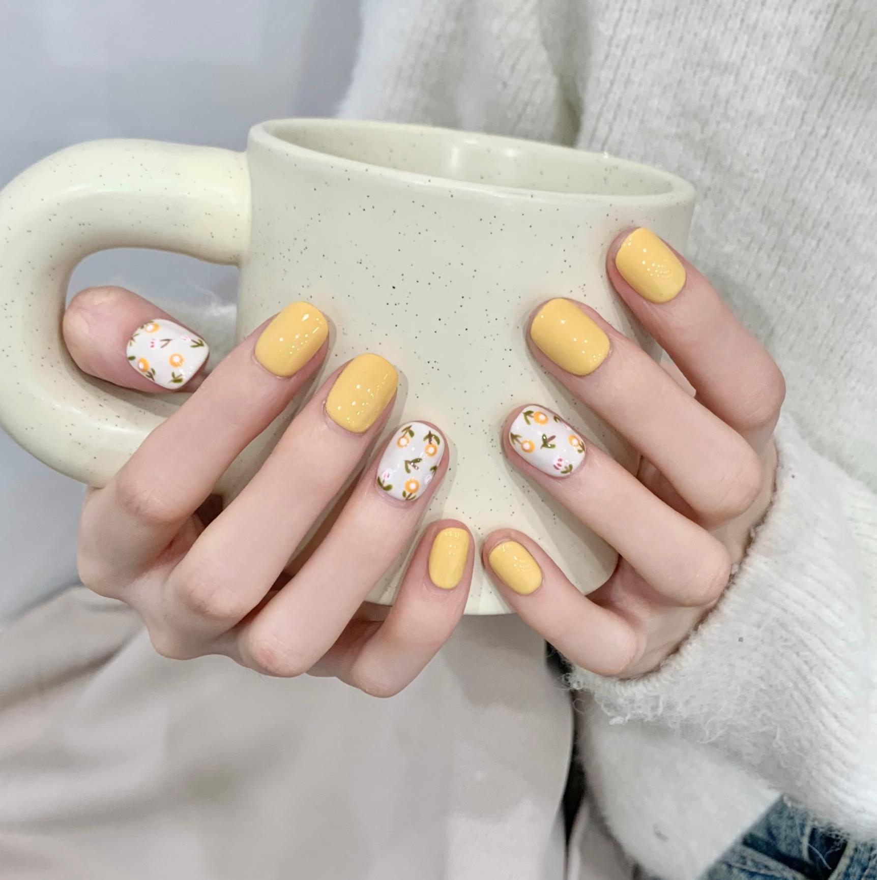 純粋な手作りの甲の春の日の小さい黄色の花のネイルアートは甲の短いタイプのシンプルでかわいい風の爪のネイルアートの貼ることを身につけます。