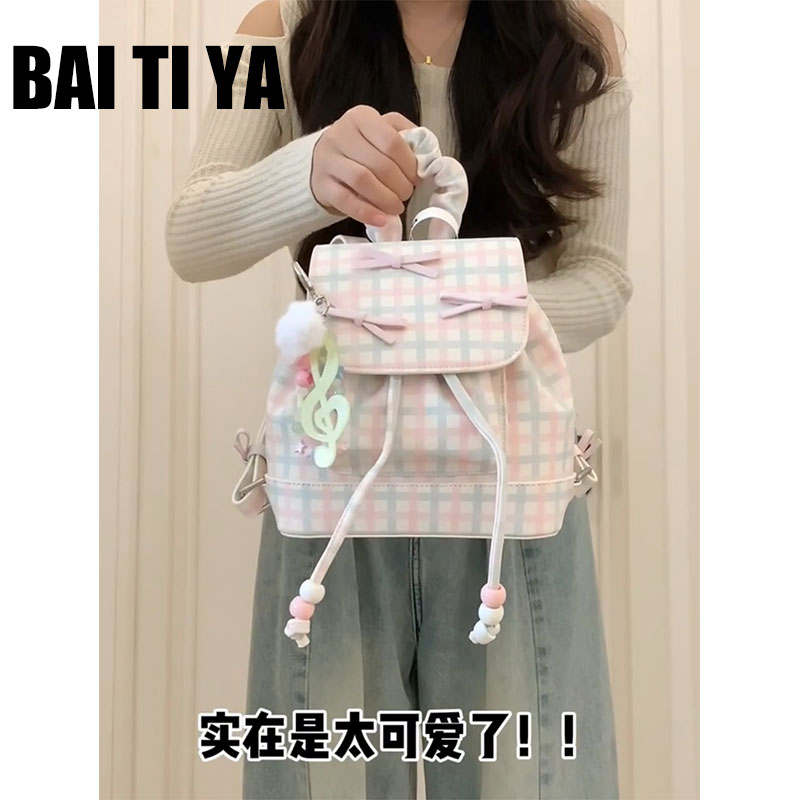 BAI TIYA手账系列少女蝴蝶结芭蕾风小背包可爱出游双肩包小型包包