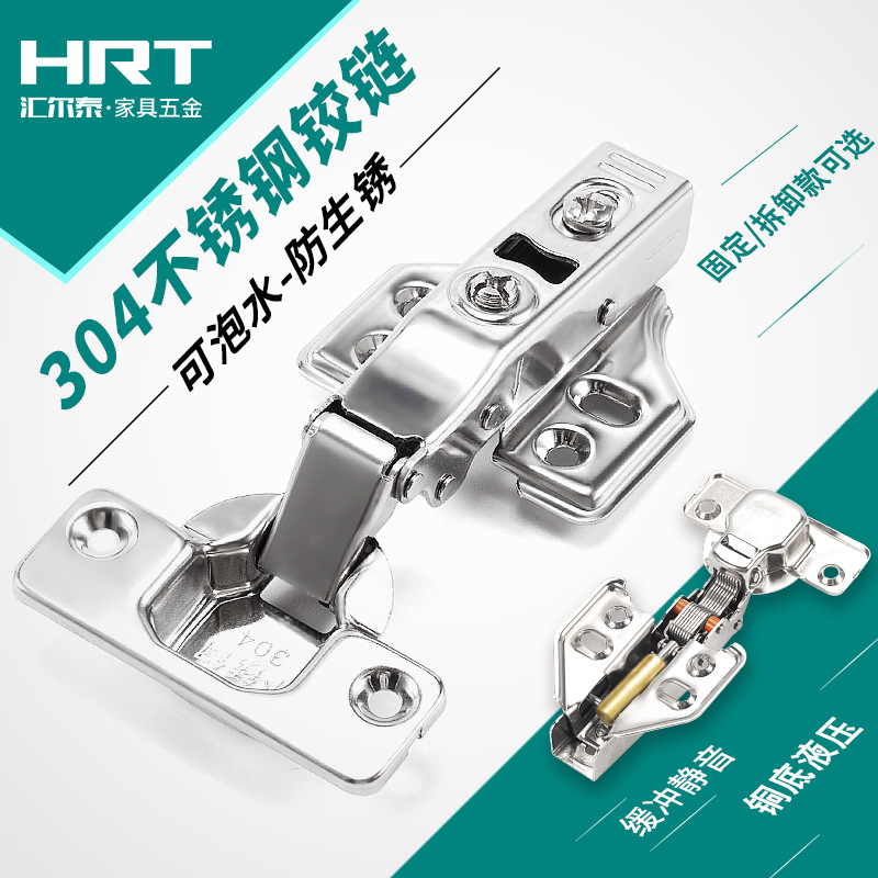 纯正304不锈钢铰链液压缓冲阻尼合页橱柜衣柜门可泡水静音铰链