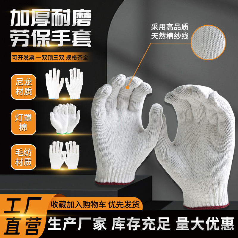 綿ガーゼ手袋、労働保護、耐摩耗性糸手袋、厚みのある滑り止め、薄いナイロン建設現場卸売作業耐摩耗性