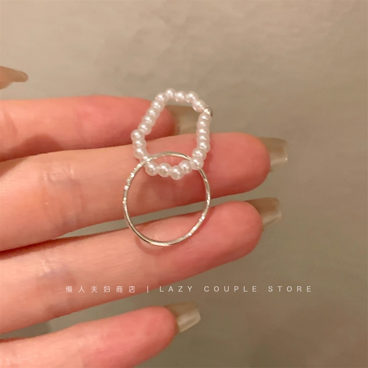 双层缠绕小众设计感串珠素圈交叉戒指女高级感叠戴指环简约食指戒