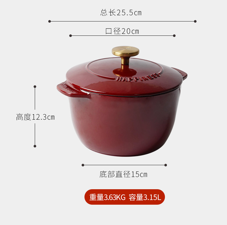 小さな幸せなエナメル鍋鋳鉄鍋蒸し焼き鍋家庭用多機能シチュー鍋海鮮鍋スープ鍋電磁ストーブ共通