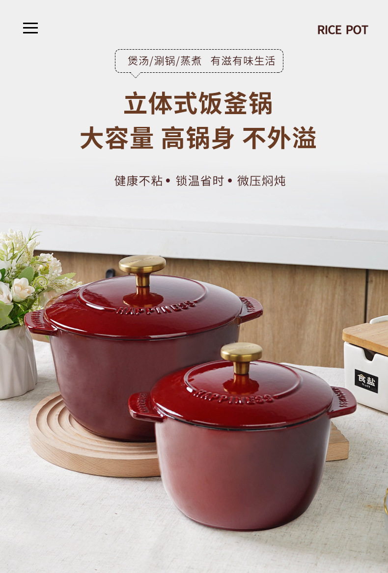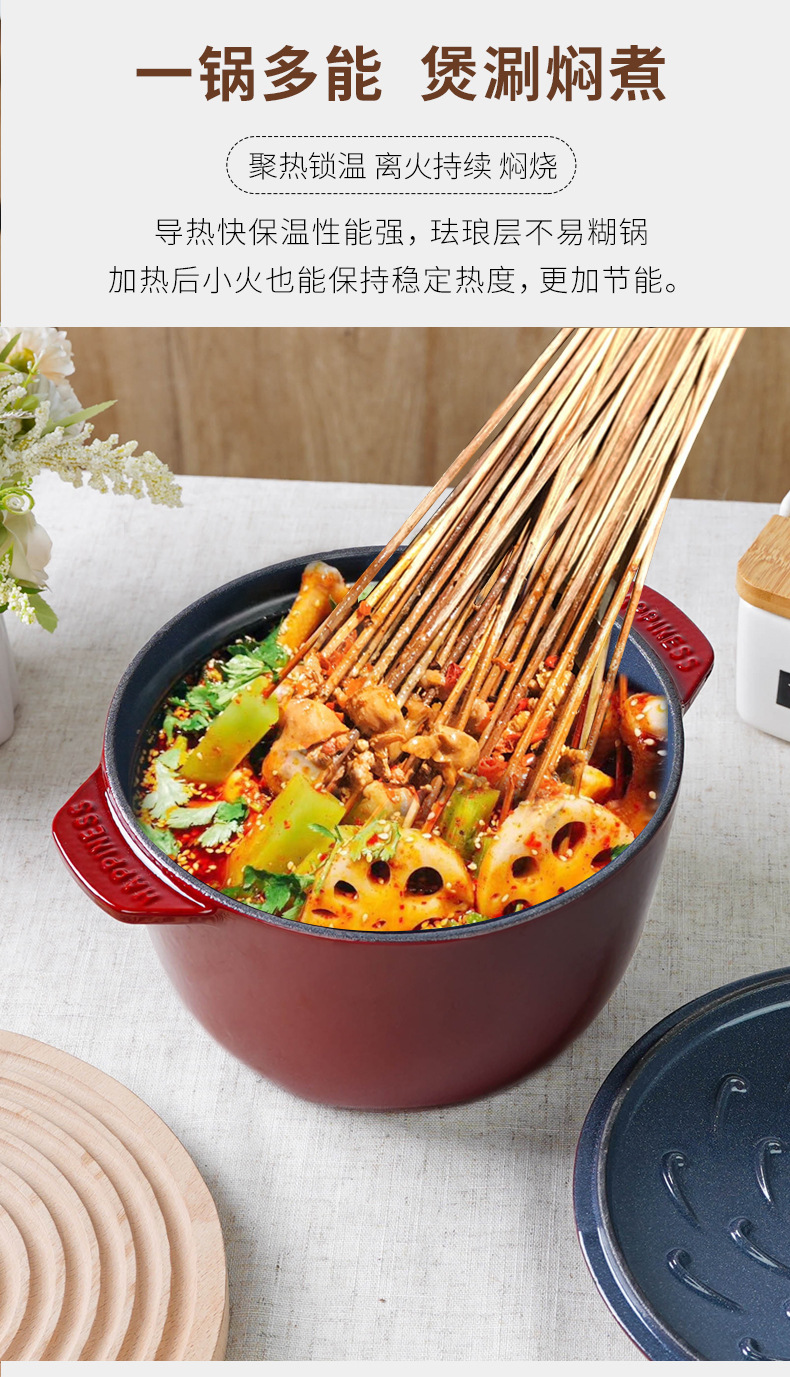 小さな幸せ22cm鋳鉄エナメル鍋耳上げ煮込み鍋家庭用炊飯器鍋多機能炒め煮込み鍋電気