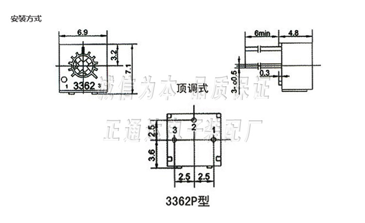 仕様 3362P-B100Ω,3362P-B500Ω,3362P-B1K,3362P-B2K,3362P-B5K,3362P-B10K,3362P-B20K,3362P-B50K,3362P-B100K,3362P-B500K,3362P-B1M