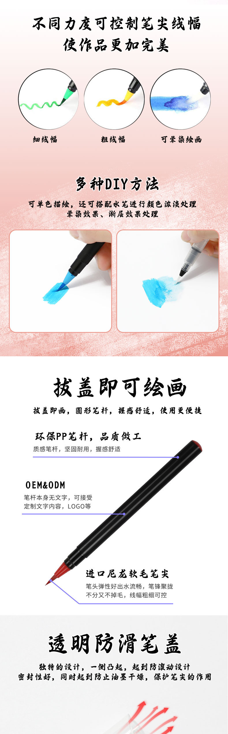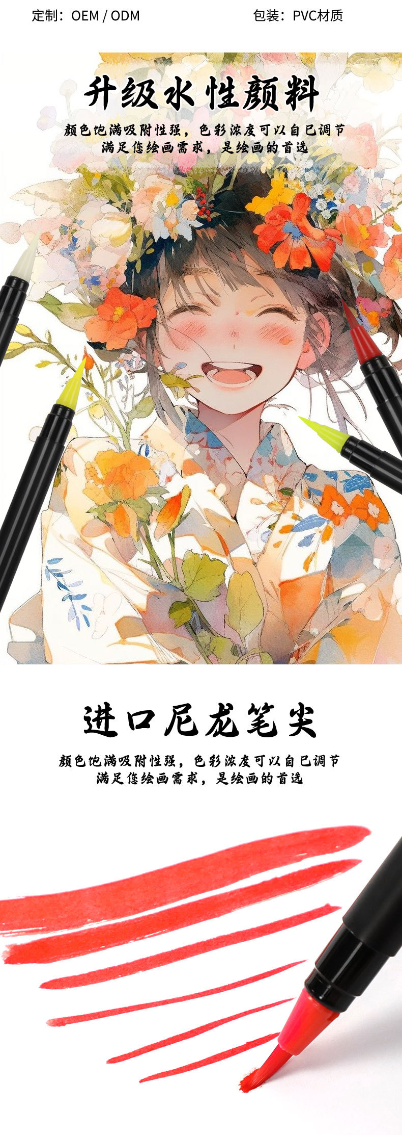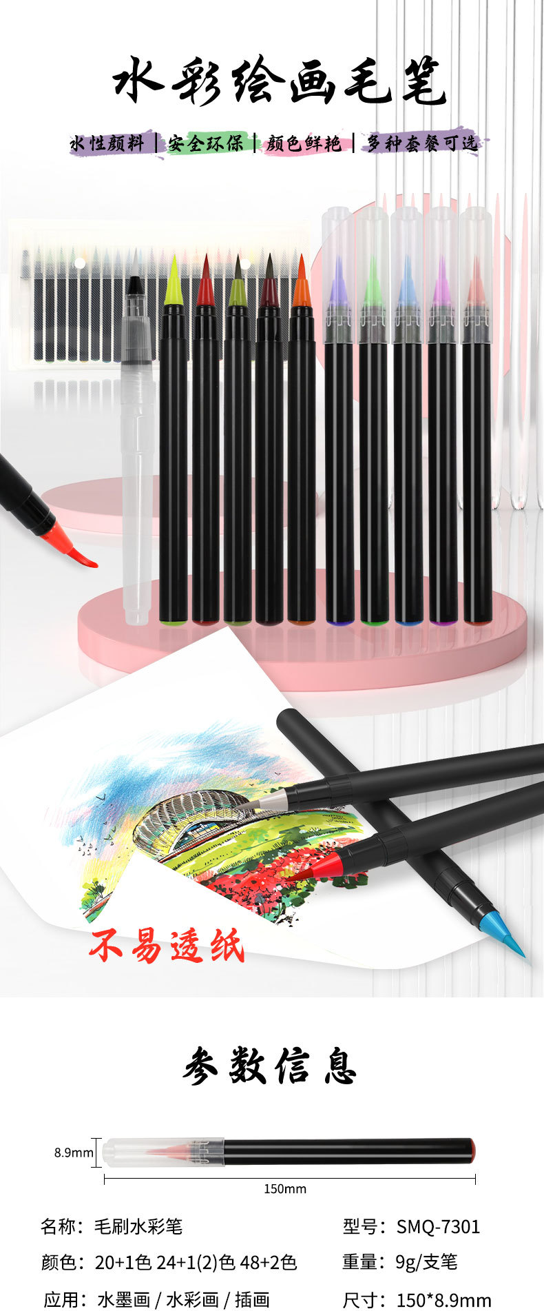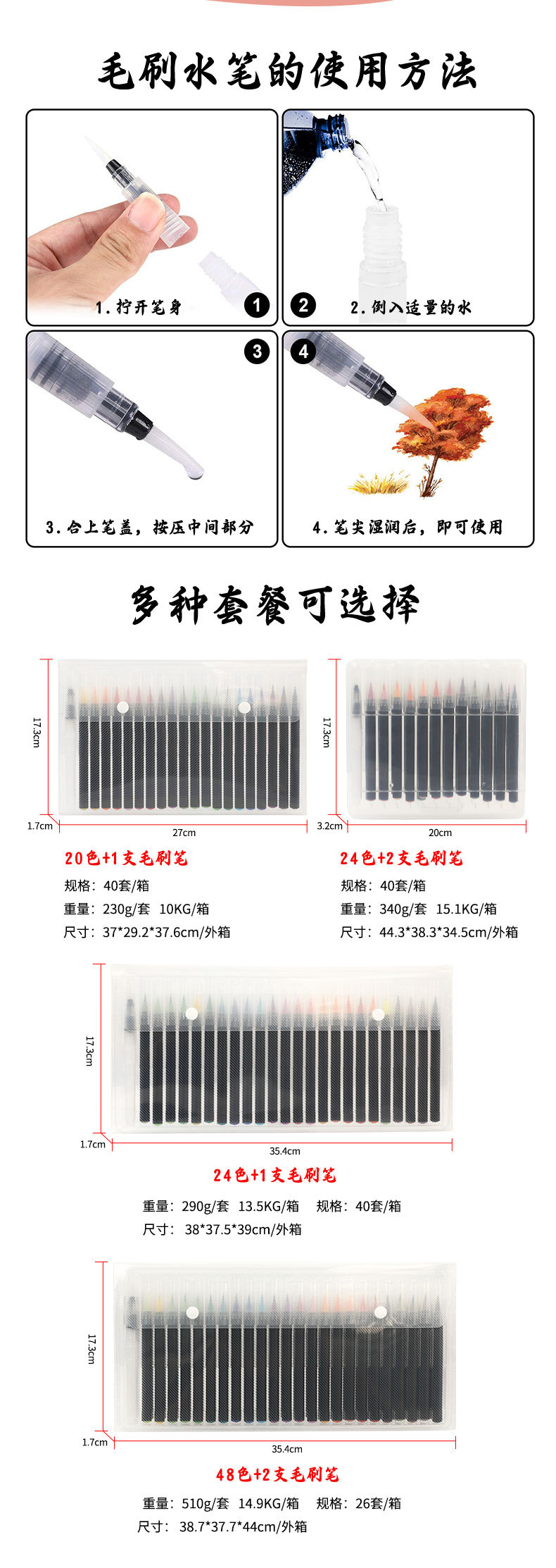 カスタム24色48色ソフトヘッド水彩ペン水洗い可能水彩ブラシペンカラー学生ブラシセット卸売り