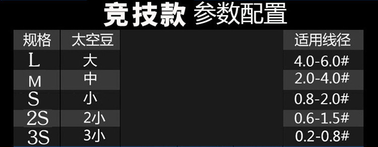 仕様 L(4.0-6.0),M(2.0-4.0),S(0.8-2.0),2s (0.6-1.5),3s (0.3-0.8)