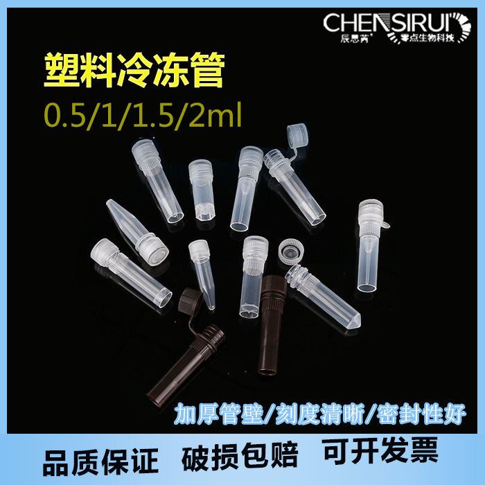 プラスチック凍結保存チューブ 0.5/1/1.5/2ml ネジ付き内ネジ尖底平底遮光茶色凍結保存チューブ透明