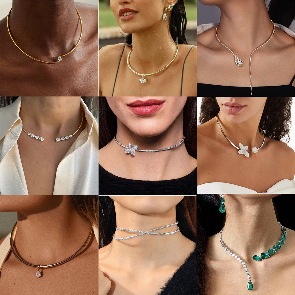 跨境热销满钻开口项圈女高级感派对时尚合金项圈女百搭合集collar