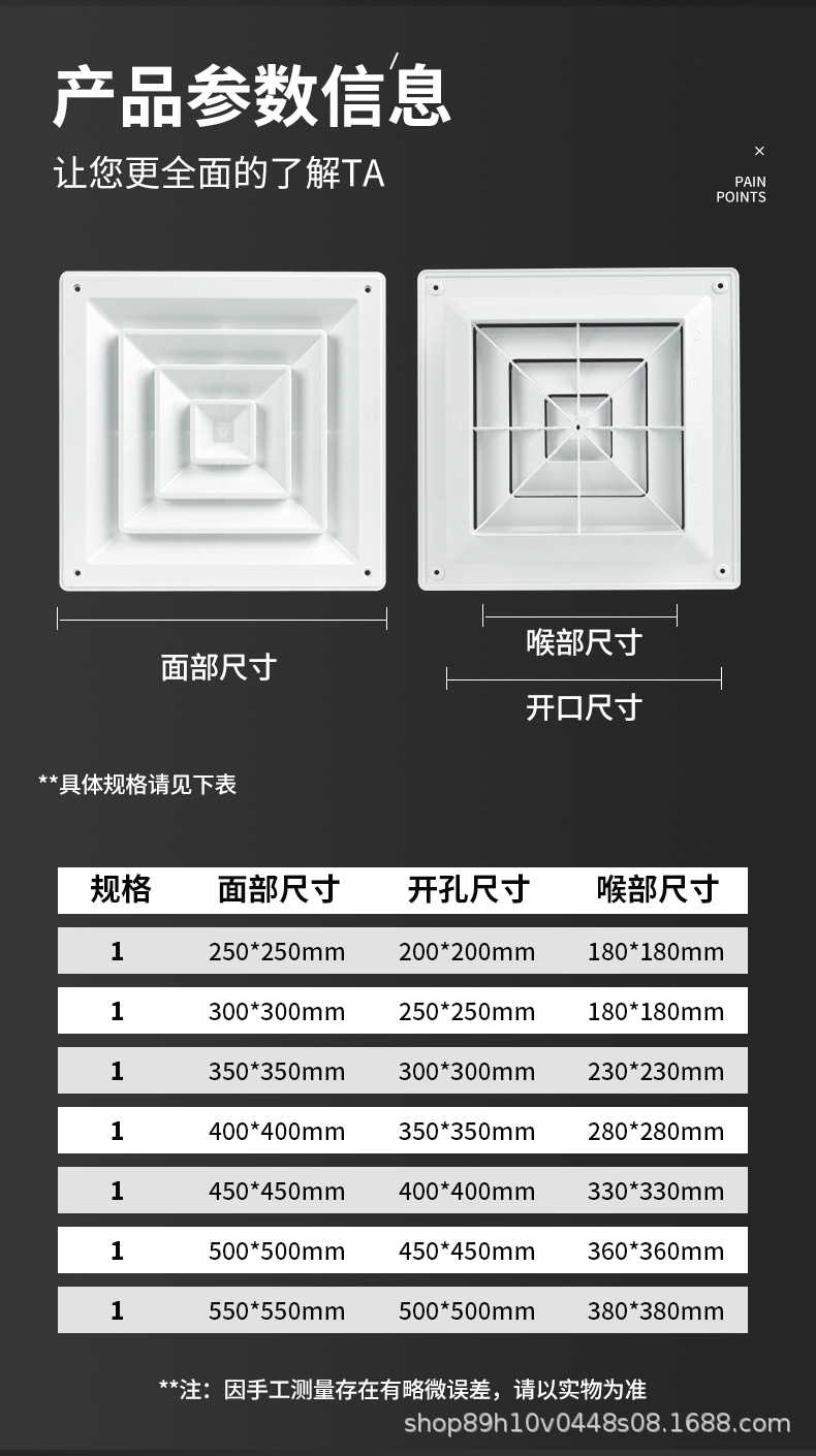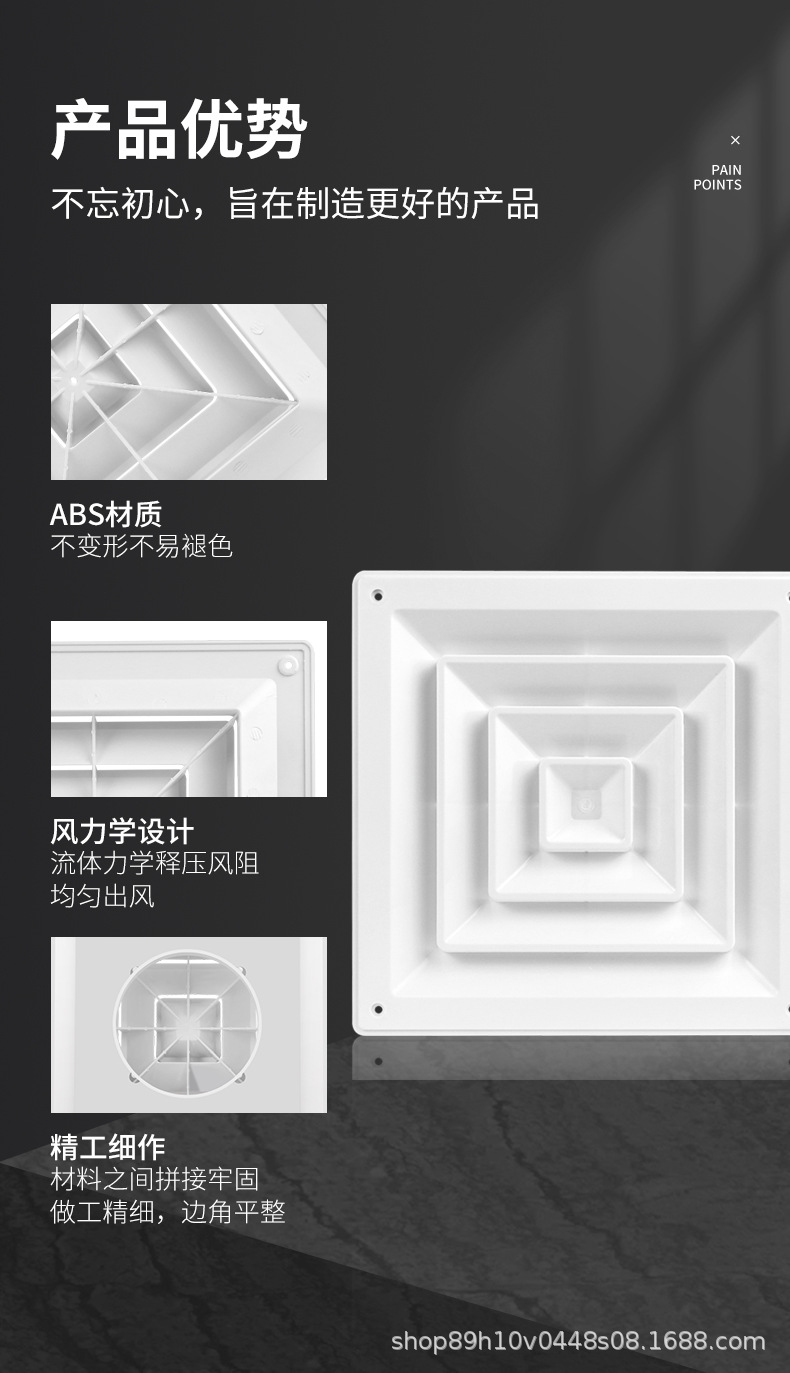 厂家直发ABS散流器中央空调四面出风口装饰盖排气口出风罩通风口