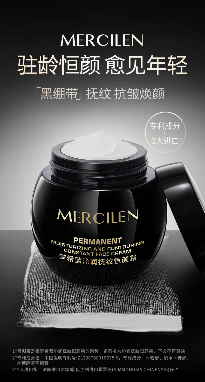 夢希藍沁潤撫紋恒顔クリーム50g抗シワ淡紋保湿潤い黒包帯クリーム生放送