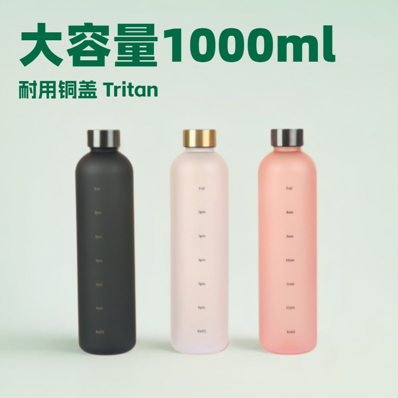 1000ml塑料杯太空杯大容量渐变磨砂随手水杯Tritan纯铜盖不锈钢盖