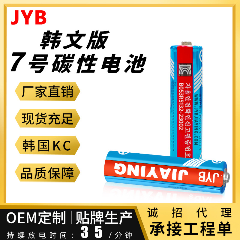 【韩国KC认证】JYB7号碳性电池R03/AAA佳盈电池cctv7国防军事频道