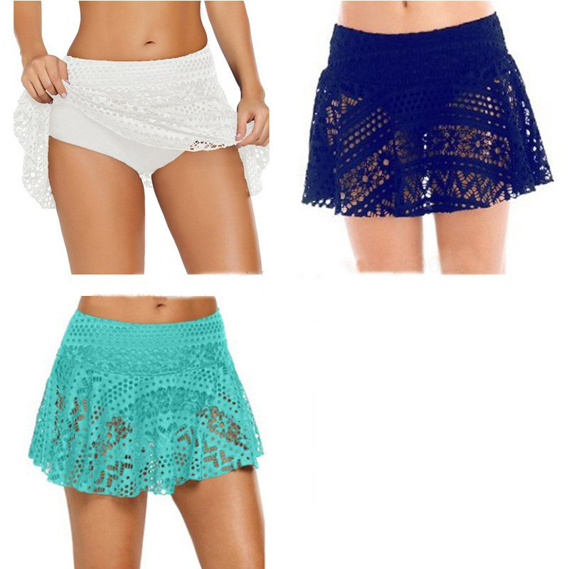 欧米の新型の大きいサイズのビーチのスカートのメーカーは純色の通気を卸売りして光のレースの辺の金の三角の水泳のズボンを防ぎます。