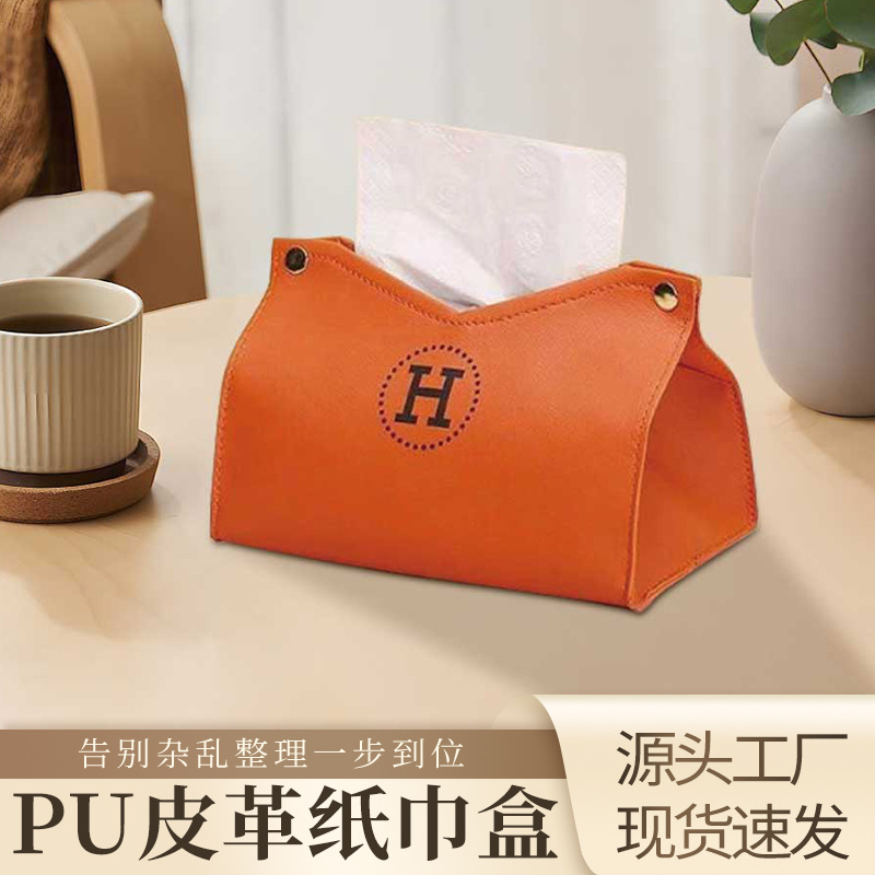 愛馬橙ティッシュケース高級ティッシュケース家庭用収納リビングナプキンケース車載シンプル革ティッシュケース